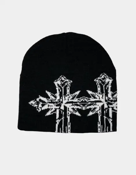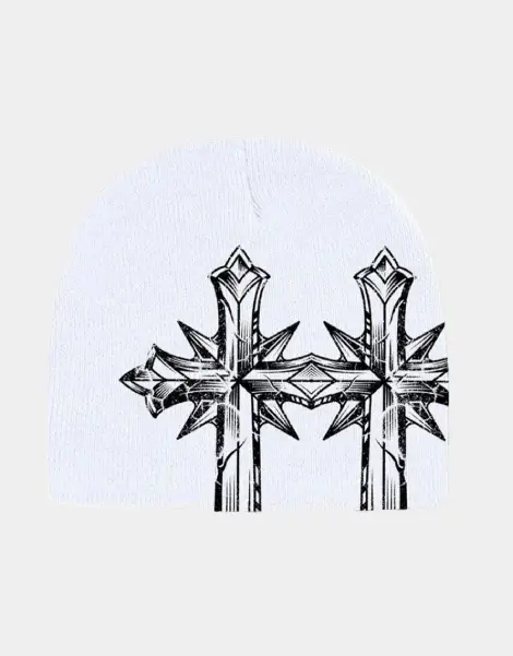 Our Y2K beanie is the perfect union of functionality and retro style.Available in timeless black and vibrant white, it offers a distinctive design with a double cross pattern that captures the grunge, streetwear and gothic spirit of the early 2000s.Crafted in a soft blend of acrylic, wool and cotton, this unisex beanie fits every head with one size fits all. It transcends the seasons, promising to complement light spring outfits as well as winter layers.
