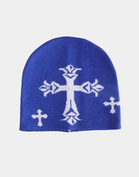 Relive the cult era with the Y2K Cross Beanie. Choose from classic colors – white, black, blue, beige – each adorned with a bold cross, the flagship symbol of the Emo and Punk subculture of the early 2000s. Made from soft acrylic, it promises warmth and comfort in all circumstances. Unisex and versatile, it fits all, ready to add a retro touch to your winter outfit.