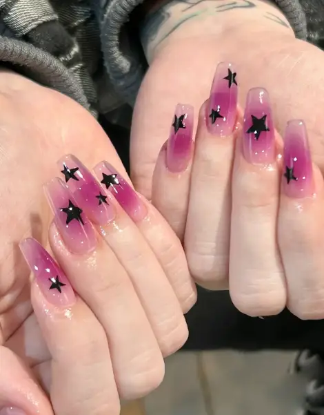 Discover “Trashy Y2K Nails”, the perfect finishing touch for any fashionista inspired by the iconic 2000s era. Featuring a vibrant star design on a purple base, these half-ballerina acrylic nails promise exceptional durability and presence. Captivating the eye, they embody the Y2K trend with unforgettable sparkle.