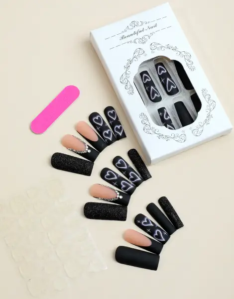 These nails are the perfect base for an authentic Y2K look. Pair them with studded bracelets and a choker necklace for a total emo effect. Or opt for contrast with pastel clothes for a subtle blend of sweet and rebellious. They’re the essential asset to complete your wardrobe and embrace the Y2K era with confidence.