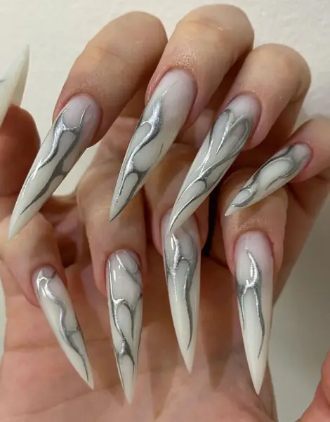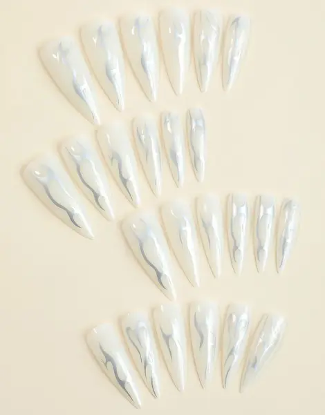 Make your style sparkle with Y2K Grey Nails – your new must-have! These fashion claws, in white and grey colors ablaze with flames, are the on-trend finishing touch for fashionistas.