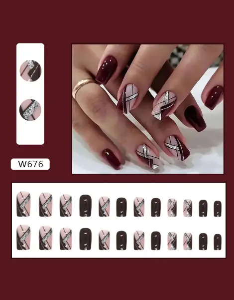 Immerse yourself in the iconic Y2K era with our selection of dark red artificial nails.Designed for fashion enthusiasts, these nail jewels embody bold geometric design and a color palette that captures the spirit of the era. Made from durable plastic, they offer a variety of sizes to suit every finger. The rounded square design is a modern twist on a vintage aesthetic, ensuring that every gesture is an expression of style.
