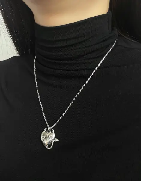 This Vintage Y2K Necklace, with its boisterous heart-shaped design, is much more than just an accessory. Crafted from durable, shiny silver-colored zinc alloy, it embodies the sturdiness and brilliance that marked the beginning of the millennium. Suitable for the Emo, Goth, Punk or simply nostalgic Y2K spirit, this jewel is a must-have.