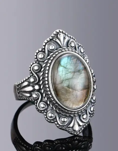 To own this ring is to embrace a piece of fashion history. The charm of labradorite is timeless, offering a touch of magic to your everyday life. This jewel doesn’t just adorn your finger, it tells a story, the story of a bygone era. Let your hand become the canvas of a reinvented era.