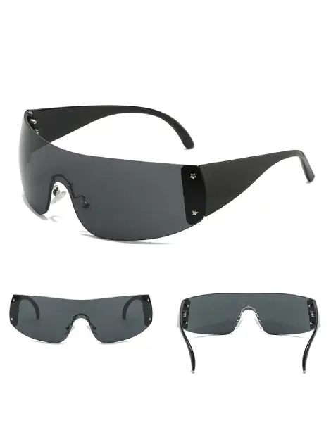 Match these frameless sunglasses with your favorite Y2K pieces for a harmonious ensemble. Their sleek design pairs perfectly with metallic accessories or boldly patterned clothing. For a touch of sparkle, pair them with silver jewelry or a reflective handbag. Let these glasses guide your inspiration towards an authentic, contemporary Y2K look.