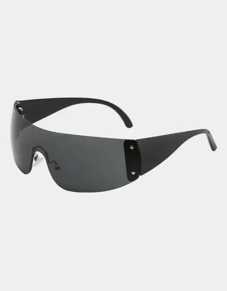Our frameless sunglasses embody the Y2K style revival. Featuring gradient lenses, UV400 protection and a starry design, they are the epitome of functional elegance. Highly resistant plastic guarantees lightness and durability, while the textured hinge promises unrivalled flexibility. With their bold silhouette and black finish, they’re destined to become the centerpiece of any Y2K collection.
